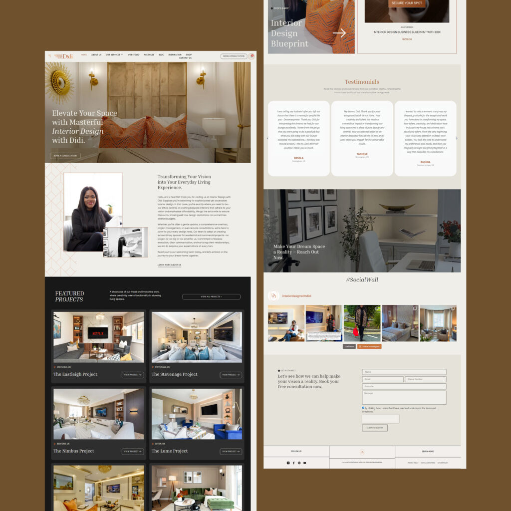 Interior Design With Didi is a UK-based interior design brand focused on creating bespoke residential and commercial spaces that are both functional and visually refined. The goal of this project was to design and develop a classic, elegant website that reflects the brand’s personality while presenting its services, projects, and client experience in a clear and professional wa